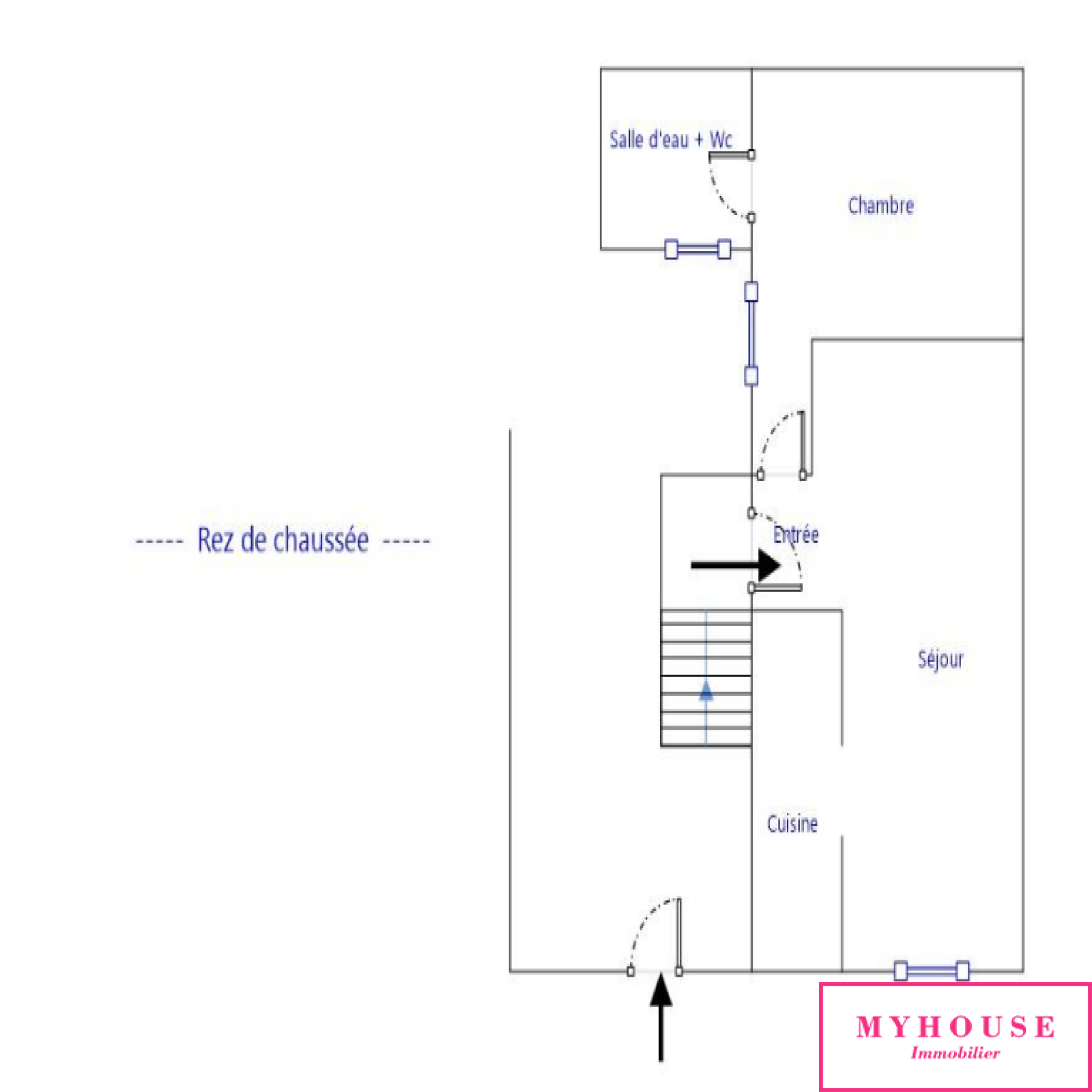 Maison 1; entrée, séjour, cuisine, chambre et salle d'eau avec wc